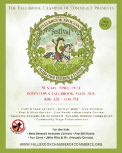 Caboose Tours at Avocado Festival April 19, 2026 From: 9:30 am To 4:30 pm Main & Elder Streets 127 W. Elder St Fallbrook , CA 92028 The Caboose and mock Station at Railroad Heritage Park will be open for Docent led tours.