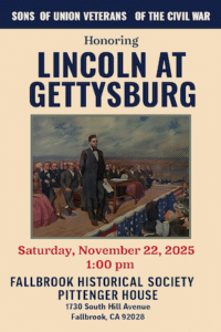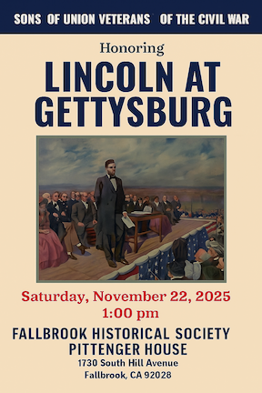 Remembrance Day November 22, 2025 From: 1:00 pm To 2:00 pm The Pittenger House at The Fallbrook Heritage Center 1730 South Hill Avenue Fallbrook , CA 92028
